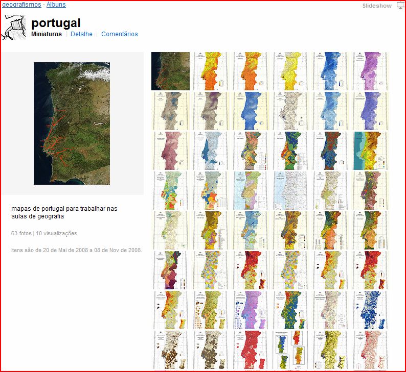 Nota 1: Cliquem na imagem para ir ao FLICKR do geografismos (lá encontrarão o «album» Portugal com os ditos mapas).
